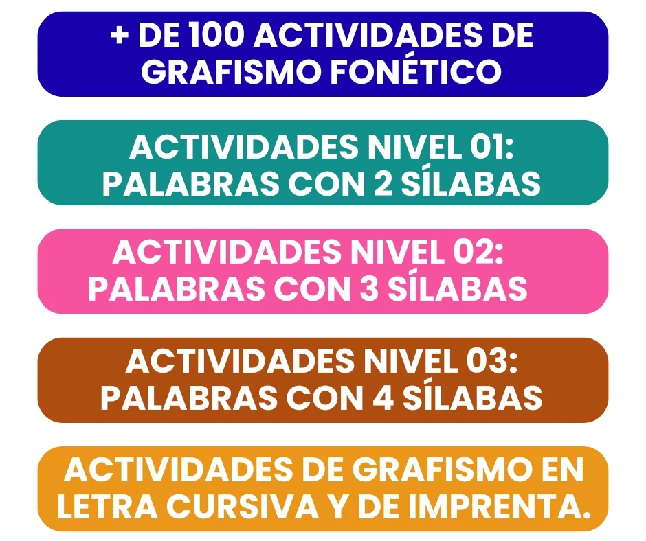 ✅Actividades de Grafismo Fonético Nivel 1, 2 y 3 — U$17