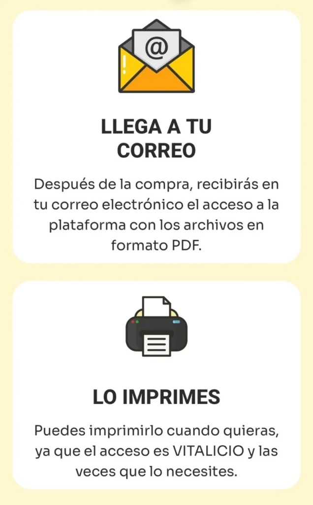El acceso al Área de Miembros se envía a tu e-mail inmediatamente después de la confirmación del pago. ¡Allí podrás descargar todo el contenido en PDF!
